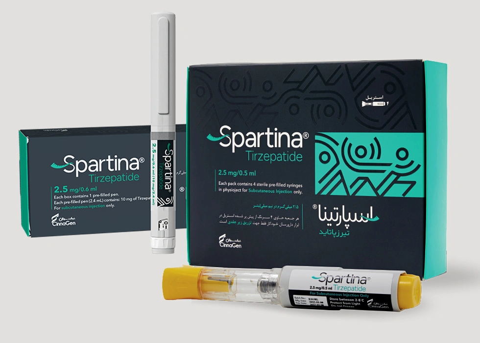 Spartina® is a pharmaceutical preparation containing tirzepatide, a glucose-dependent insulinotropic polypeptide (GIP) and glucagon-like peptide-1 (GLP-1) receptor agonist, produced by CinnaGen Company under strict manufacturing standards. Spartina® is manufactured as two forms: sterile pre-filled syringe in Physioject™ (autoinjector), and pre-filled pen for subcutaneous use only.